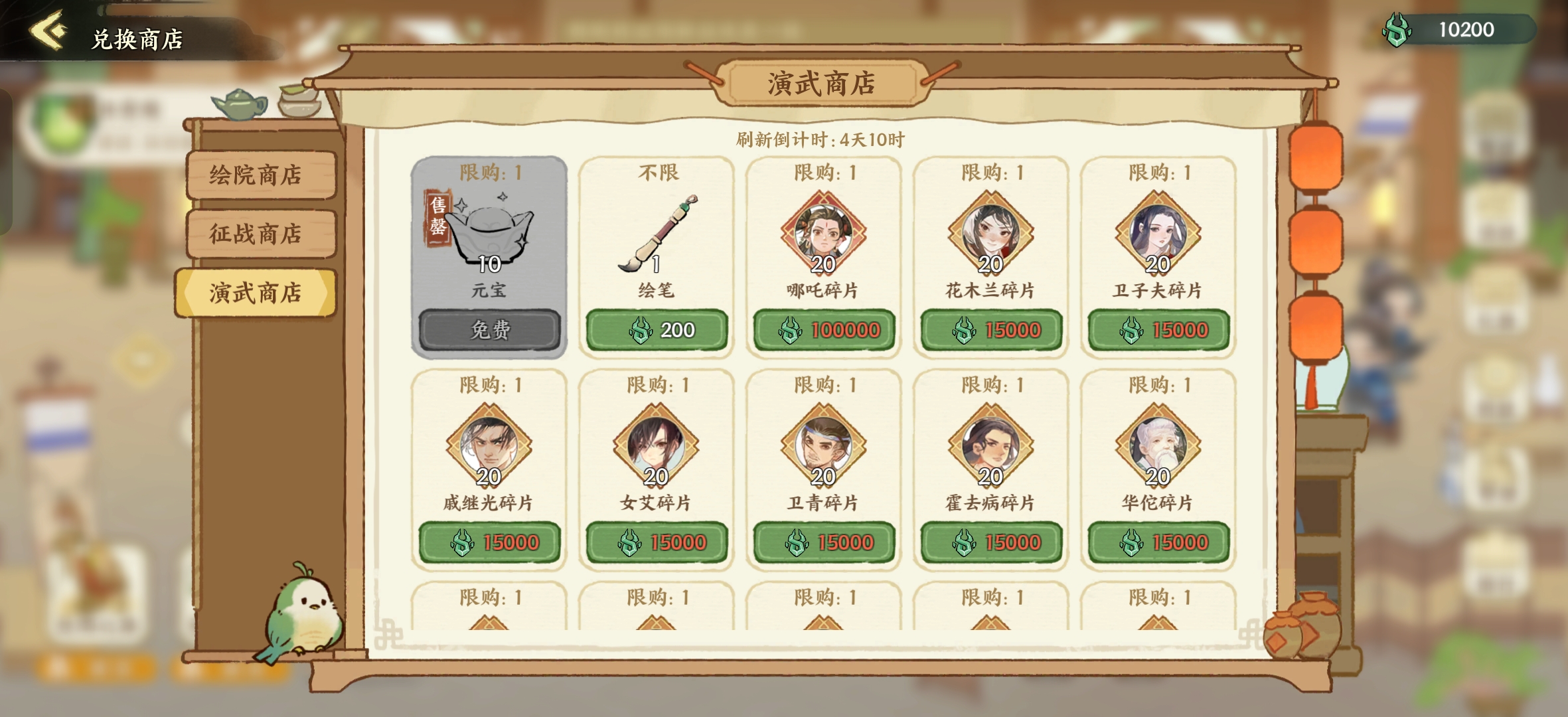 在演武商店中,元宝同样是必换的,而绘笔则坚决不要兑换!如果你是零氪玩家或者刚刚首充,建议首先兑换一次哪吒,然后选择你的主力名士。如果你是小氪玩家,可以考虑换取哪吒的碎片,努力将其提升到五星以解锁专武。这一过程可能需要几周的时间,但只要坚持,最终你将会拥有强大的战力,仿佛在游戏中获得了一把“无敌钥匙”。