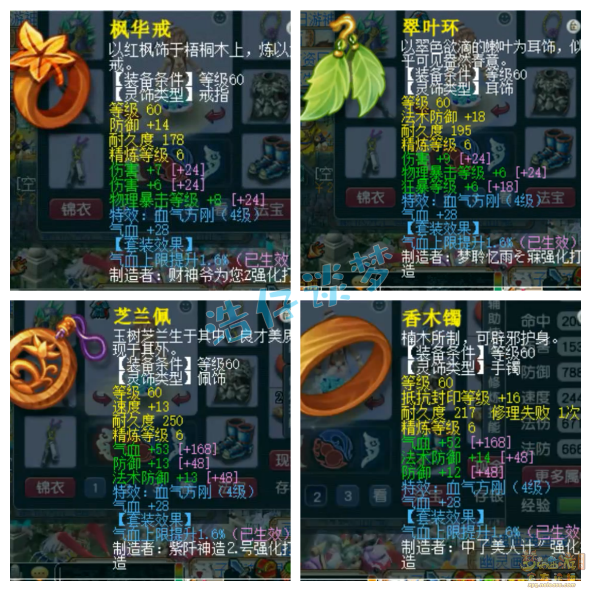 戒指和耳饰的搭配也相当讲究,双伤害一物暴、伤害物暴狂暴,配饰和手镯则侧重气血防御与法防,均打了6锻星辉石,特效为4级血气方刚。